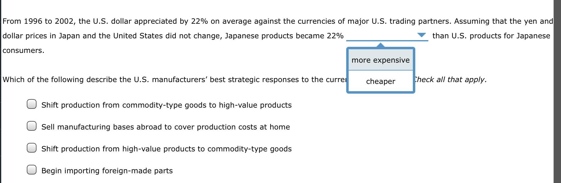 Solved From 1996 To 2002 The U S Dollar Appreciated By 22 Chegg Com