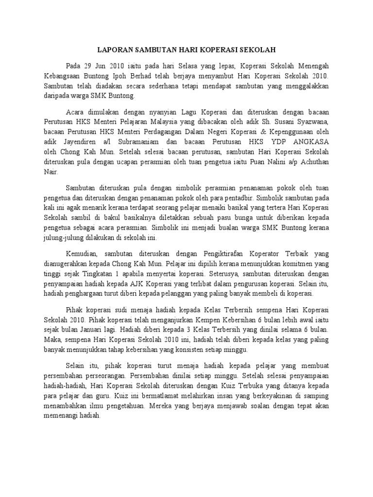 Laporan Sambutan Hari Koperasi Sekolah Pdf
